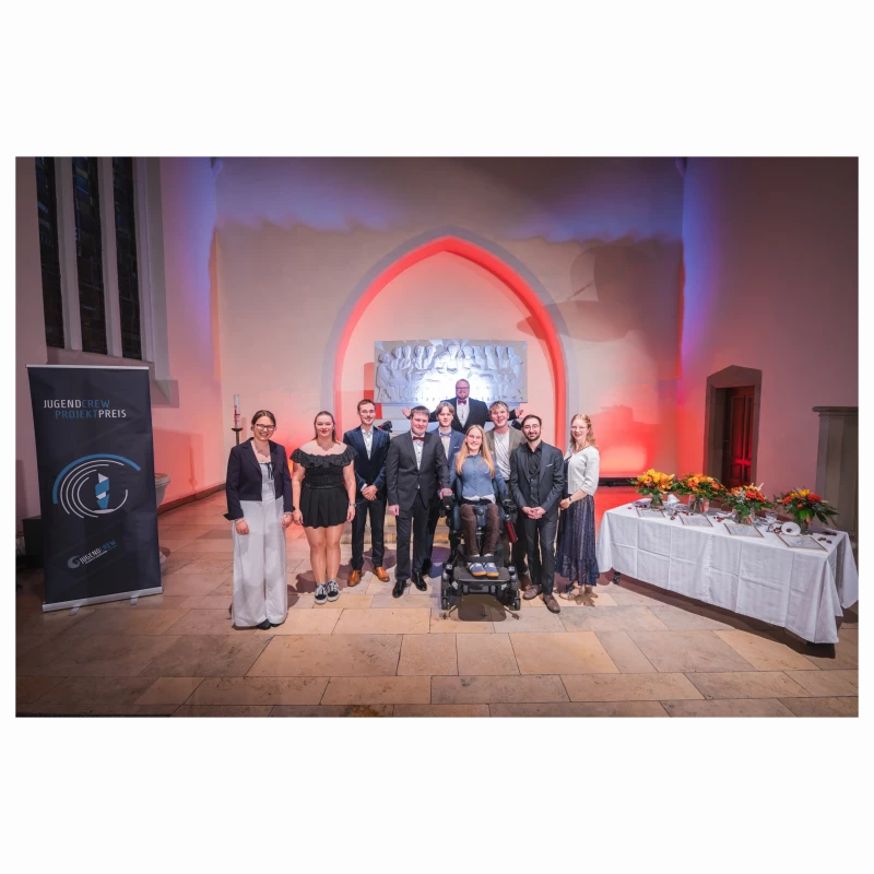 Am 1. November 2025 verlieh die Jugendcrew den JUPP zum zweiten Mal in der Jugendkirche Hannover. Rund 70 geladene Gäste, darunter Projektteams, Vertreter:innen der Stiftung und frühere Preisträger:innen, feierten die Vielfalt jugendlichen Engagements. Musik, Reden und ein leckeres Catering sorgten für eine festliche Atmosphäre. An bewusst zufällig zusammengesetzten Gruppentischen kamen die Teilnehmenden über ihre Projekte und Ideen ins Gespräch. Für den musikalischen Rahmen sorgte BandBase mit mitreißender Livemusik.